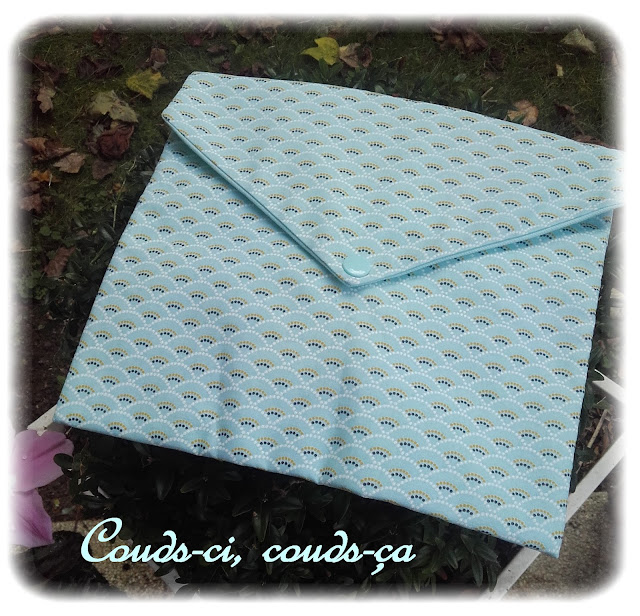 C'est un modèle Burda Patchwork hiver 2014. Dimensions 38 x 58 cm ouverte, 38 x 22 cm fermée. De taille assez généreuse pour y stocker de nombreux accessoires, elle reste cependant facile à utiliser. Grâce à sa conception en 3 volets et ses deux liens de fermeture, elle s'ouvre et se ferme aisément. L'agencement intérieur est bien pensé avec des poches de toutes tailles, certaines sont zippées et constituées de plastique transparent ce qui permet d'identifier facilement leur contenu.
